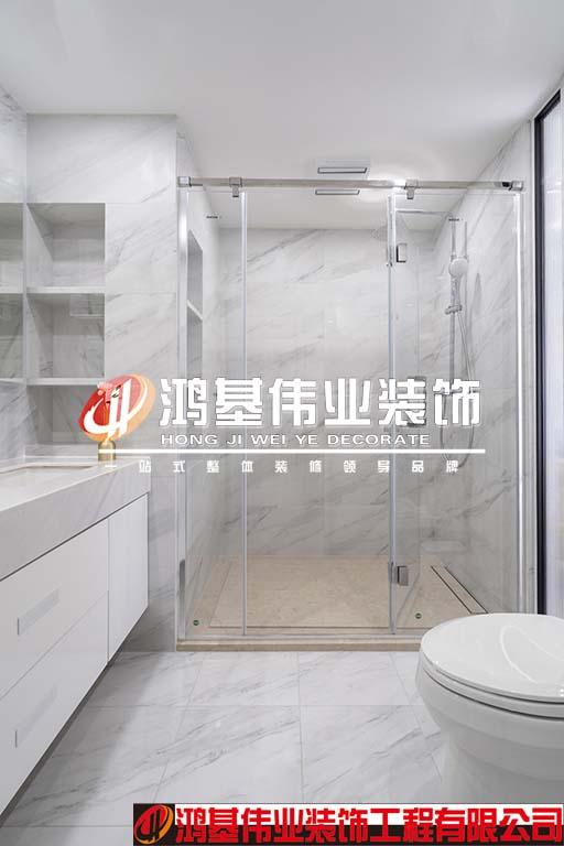 雙臺盆的設(shè)計(jì),給生活更多的便捷,壁龕完善收納,防滑地板保衛(wèi)安全,連隱形的地漏,都在訴說著生活的精致。