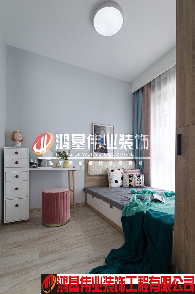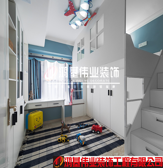 小孩房間門重新調整之后,不但能滿足小孩房必備以下功能:床、衣柜、書柜和書桌,還能把最好的陽光留給了書桌,增加了更多的收納空間。這樣歡樂童年的空間,給孩子一個可玩、可學、可休息的兒童房,讓孩子開心地健康成長。
