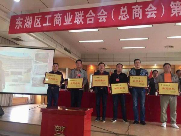南昌市東湖區(qū)人大代表、鴻基偉業(yè)裝飾公司總經(jīng)理胡克偉先生當選南昌市東湖區(qū)工商聯(lián)副主席 (左一)