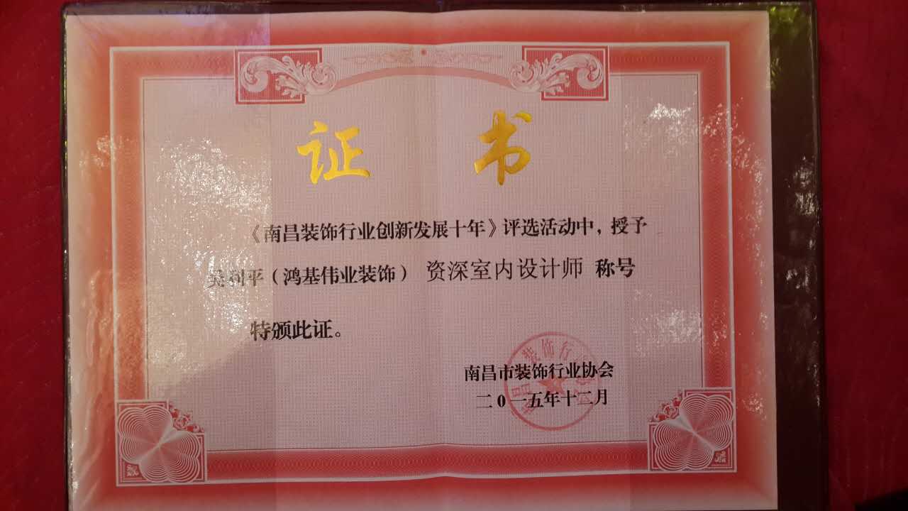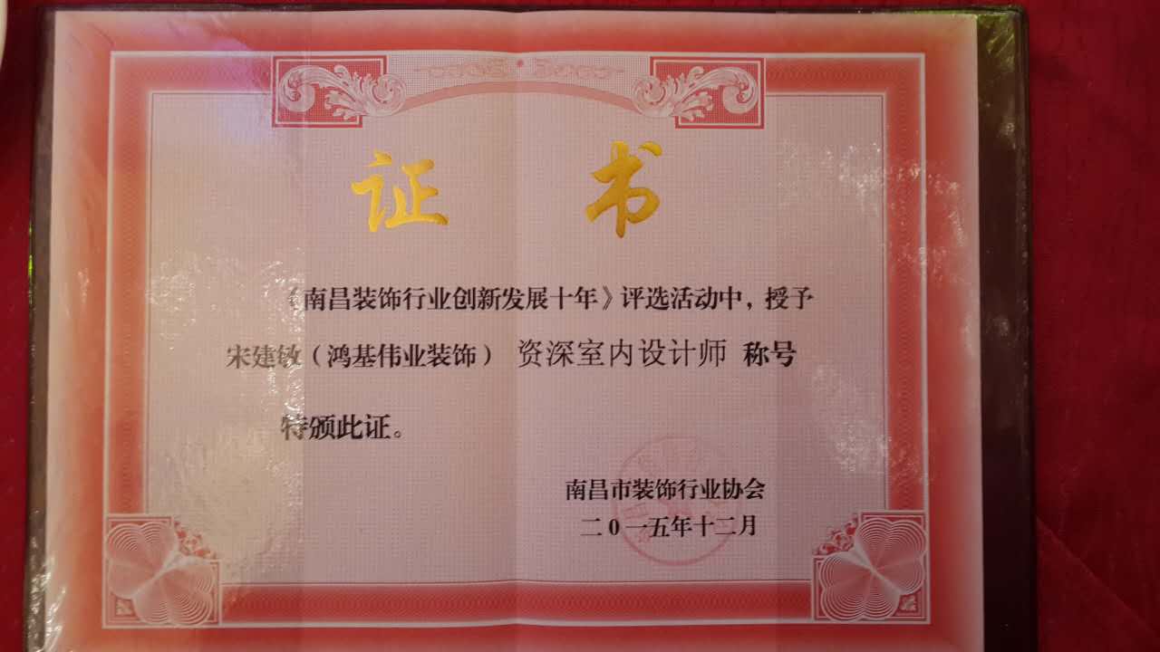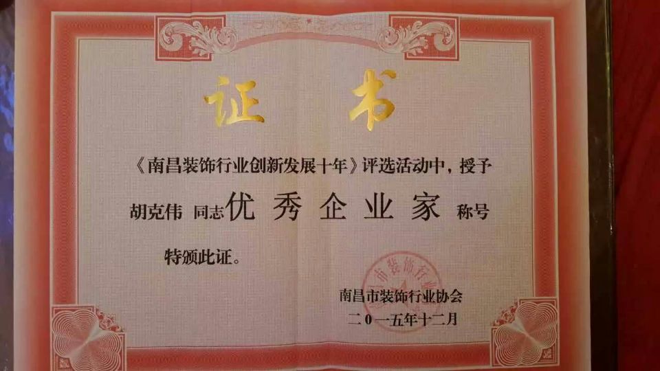 熱烈祝賀鴻基偉業(yè)裝飾榮獲《南昌裝飾行業(yè)領(lǐng)軍品牌企業(yè)》榮譽(yù)稱號(hào),鴻基偉業(yè)裝飾公司總經(jīng)理胡克偉先生榮獲《優(yōu)秀企業(yè)家》榮譽(yù)稱號(hào)