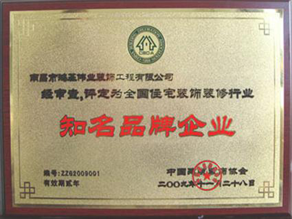 “南昌鴻基偉業(yè)裝飾”榮獲全國建筑裝飾裝修協(xié)會最高榮譽——《全國住宅裝飾裝修行業(yè)知名品牌企業(yè)》