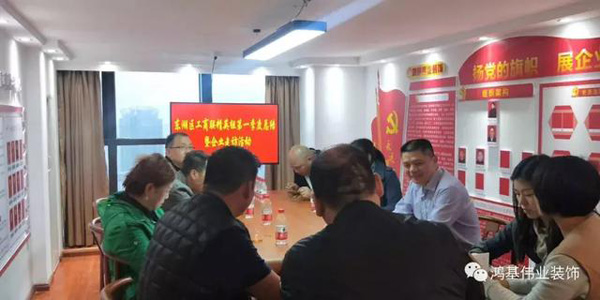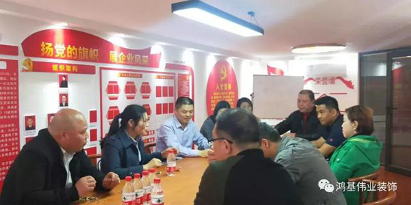 在走訪鴻基偉業(yè)裝飾公司過程中,代表們參觀了鴻基偉業(yè)裝飾公司黨支部、工會的活動室和鴻基偉業(yè)裝飾公司的文化墻,并對此給予了高度的肯定