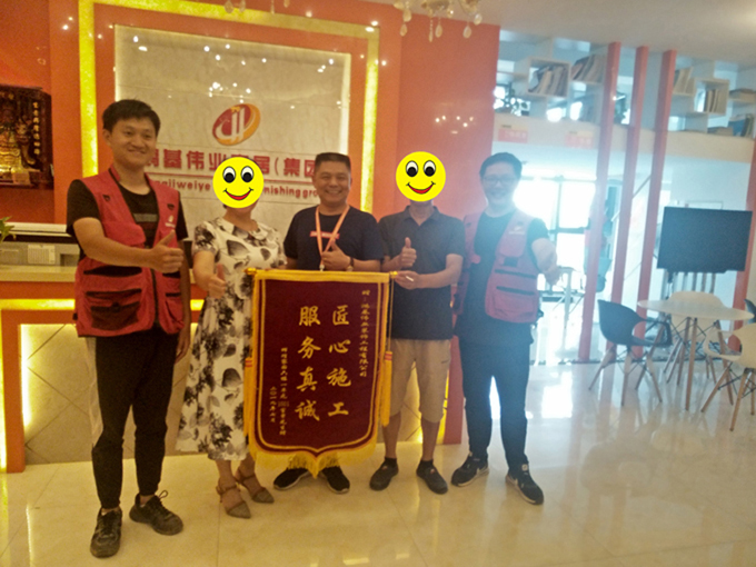 金碑,銀杯不如業(yè)主的好口碑,獲得客戶的認(rèn)可是南昌鴻基偉業(yè)所有人的共同目標(biāo)。2019年7月31日,輝煌家園的章先生攜同夫人給南昌鴻基偉業(yè)裝飾公司送來(lái)了錦旗“匠心施工,服務(wù)真誠(chéng)”,以表示對(duì)南昌鴻基偉業(yè)裝飾公司高度認(rèn)可與滿意。