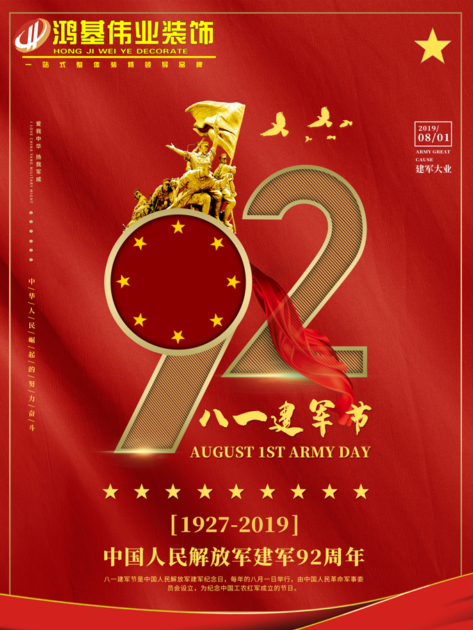 今天是8月1日,八一建軍節(jié),南昌鴻基偉業(yè)裝飾全體人員祝所有穿過軍裝的人,八一建軍節(jié)快樂!