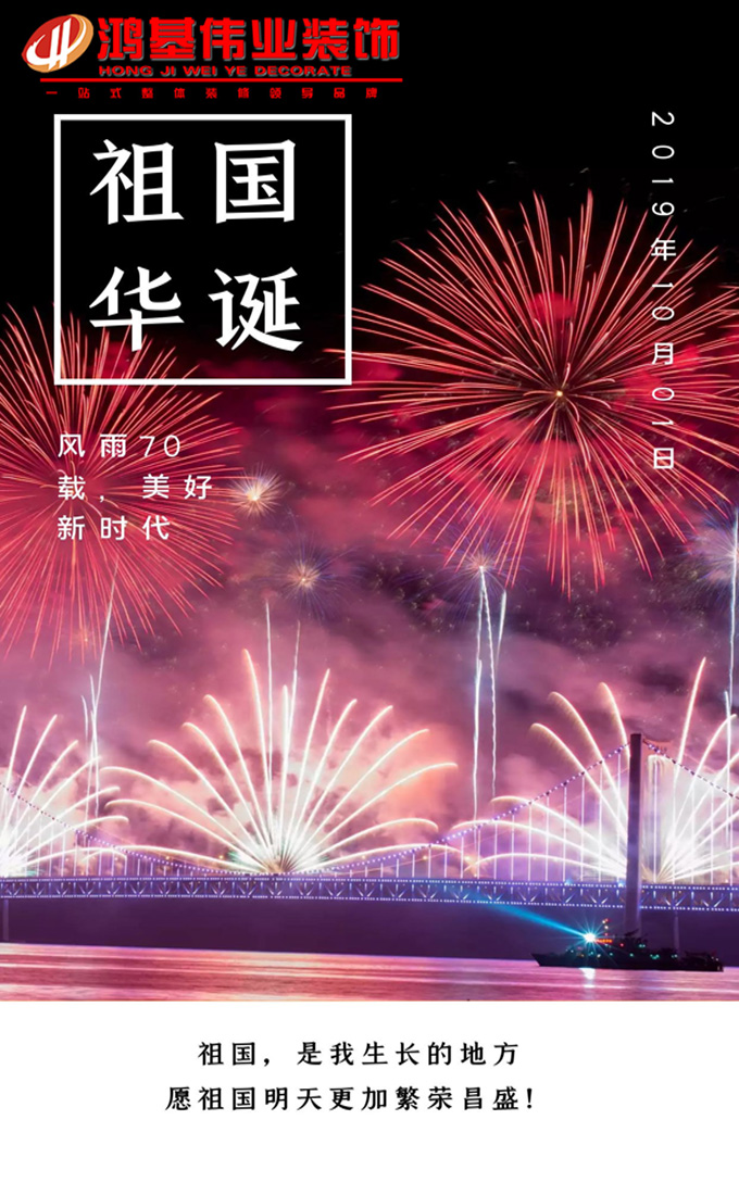 國慶來臨之際,祝愿祖國繁榮昌盛,愿每個公民都昂首闊步,開創(chuàng)未來。南昌鴻基偉業(yè)裝飾國慶鉅惠活動火熱開啟中。