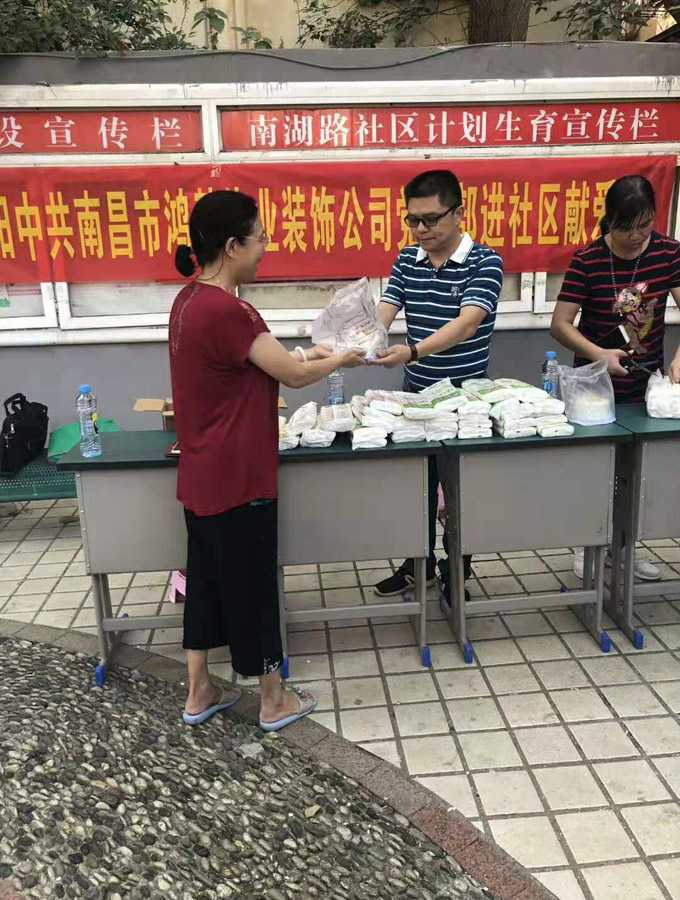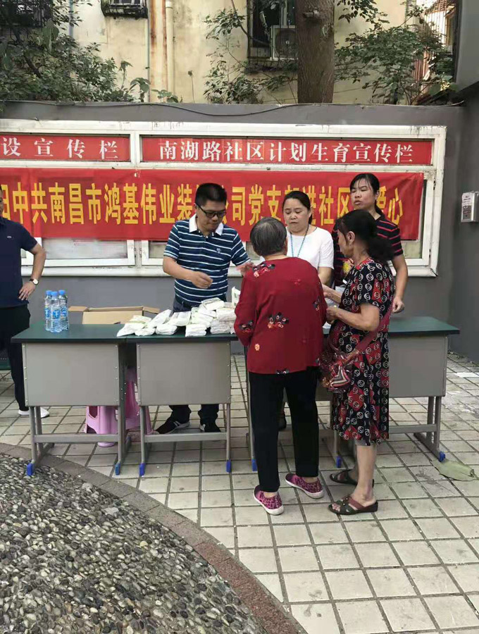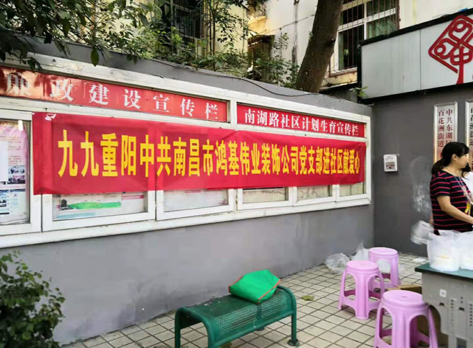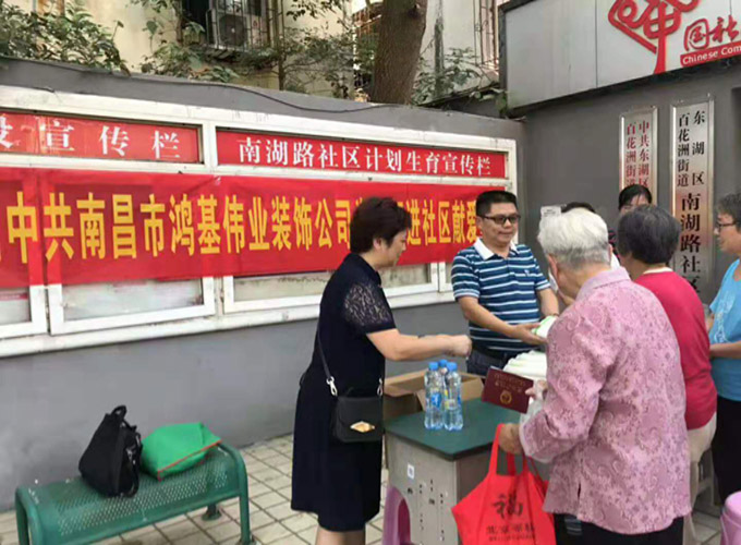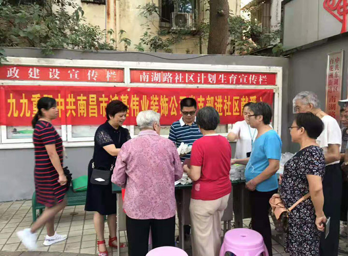 中共鴻基偉業(yè)裝飾公司黨支部聯(lián)合南湖路社區(qū)黨支部,連續(xù)五年在社區(qū)舉行《九九重陽(yáng)進(jìn)社區(qū)獻(xiàn)愛(ài)心》活動(dòng),以此表達(dá)中共鴻基偉業(yè)裝飾公司黨支部不忘初心,牢記使命,密切黨群關(guān)系,為建國(guó)七十周年獻(xiàn)禮!