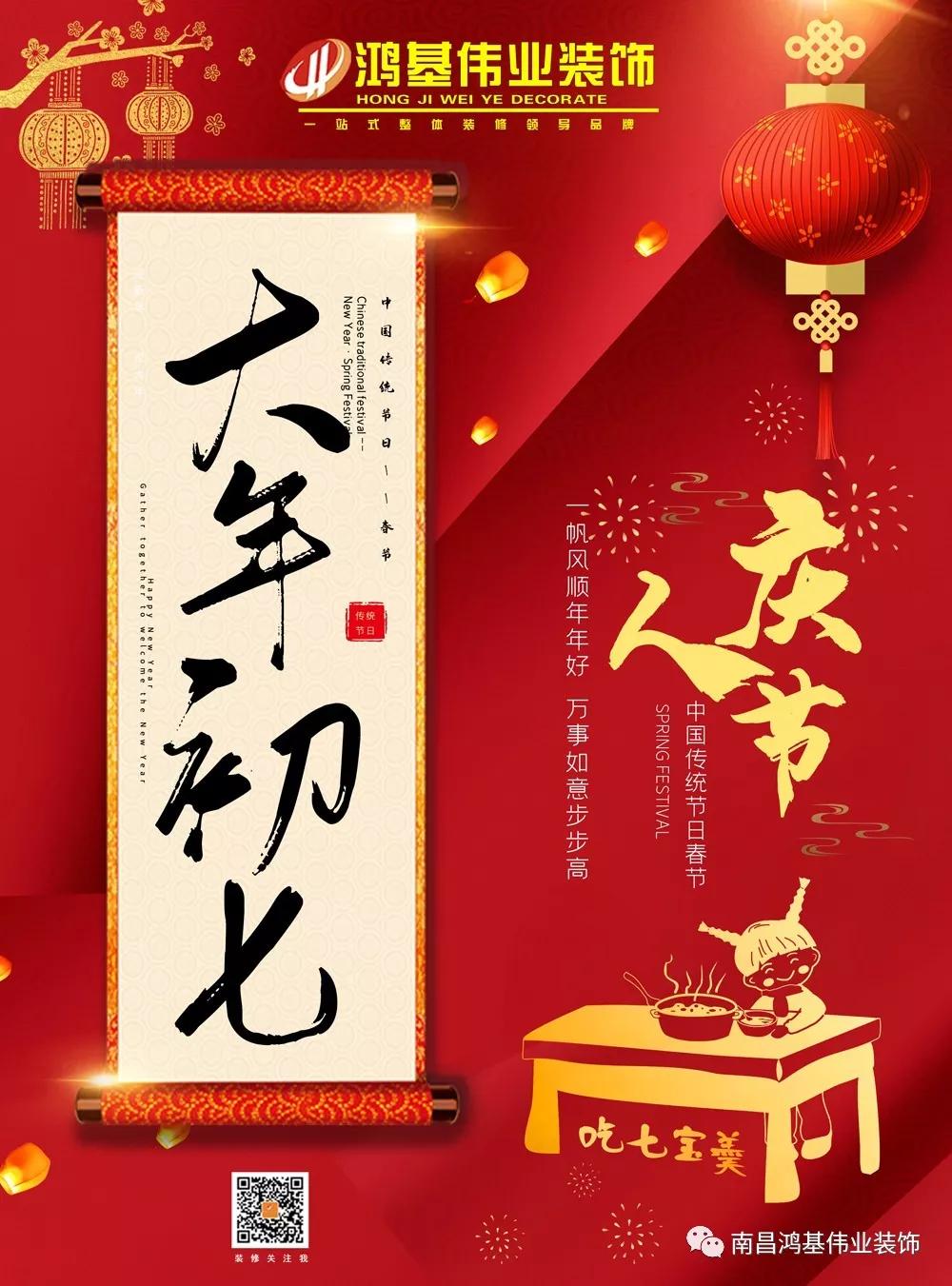 正月初七:鴻基偉業(yè)裝飾祝大家吉祥安康