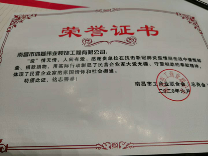 會(huì)上,深入學(xué)習(xí)習(xí)近平總書記在黨外人士座談會(huì)上的重要講話精神、全國兩會(huì)期間重要講話精神和全國兩會(huì)精神,回顧總結(jié)2019年工作,安排部署2020年重點(diǎn)工作。并號召市工商聯(lián)要進(jìn)一步團(tuán)結(jié)帶領(lǐng)全市民營經(jīng)濟(jì)人士,堅(jiān)定信心、創(chuàng)新發(fā)展,共克時(shí)艱、履職盡責(zé),積極推動(dòng)南昌經(jīng)濟(jì)高質(zhì)量發(fā)展,為彰顯省會(huì)擔(dān)當(dāng),做大做強(qiáng)做優(yōu)大南昌都市圈作出新的更大貢獻(xiàn)。會(huì)議特別指出新冠肺炎爆發(fā)以來,市工商聯(lián)認(rèn)真貫徹落實(shí)中央、省、市工作部署,主動(dòng)作為,勇于擔(dān)當(dāng),助力企業(yè)復(fù)工復(fù)產(chǎn),全市民營企業(yè)家和商會(huì)捐款捐物,為奮力奪取疫情防控和經(jīng)濟(jì)社會(huì)發(fā)展雙勝利彰顯了工商聯(lián)責(zé)任與擔(dān)當(dāng)。疫情無情,人間有愛,在抗擊疫情的阻擊戰(zhàn)中,鴻基偉業(yè)裝飾竭盡所能,捐款捐物,盡綿薄之力獻(xiàn)出民營企業(yè)的責(zé)任和擔(dān)當(dāng)并被南昌工商聯(lián)授予了榮譽(yù)證書。