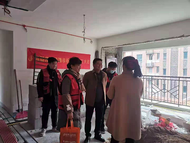 “以質(zhì)量求生存,靠口碑樹品牌”,鴻基裝飾集團工地巡檢進行中