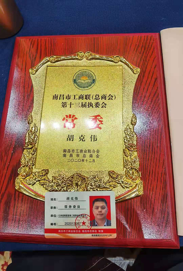 熱烈祝賀鴻基裝飾集團(tuán)董事長(zhǎng)胡克偉先生當(dāng)選為南昌市工商聯(lián)常委!