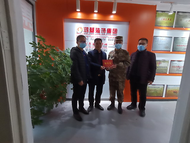 在2021年春節(jié)即將到來之際,南昌市東湖區(qū)武裝部邱建新政委、區(qū)委統(tǒng)戰(zhàn)部姚部長(zhǎng)、彭家橋街道武裝部徐部長(zhǎng)等一行蒞臨鴻基裝飾集團(tuán)市中心設(shè)計(jì)公司,開展春節(jié)前走訪慰問活動(dòng),為企業(yè)送來黨和政府的關(guān)懷,并致以節(jié)日的問候和新春的祝福。