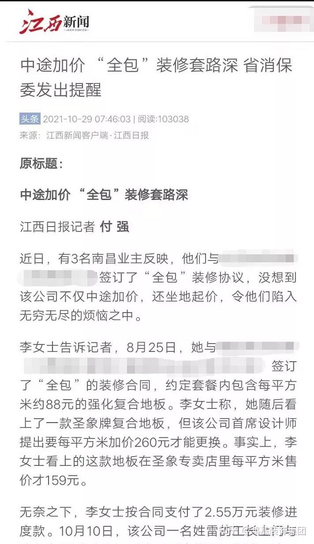 近日,江西日報江西新聞、江南都市報等媒體對某些不負(fù)責(zé)任裝修公司的行為進(jìn)行了深入報道。被報道的這些裝修公司中,存在報價不透明、隨意增項加價、施工偷工減料、工期拖延、交付結(jié)果達(dá)不到業(yè)主預(yù)期等現(xiàn)象,導(dǎo)致業(yè)主蒙受損失。