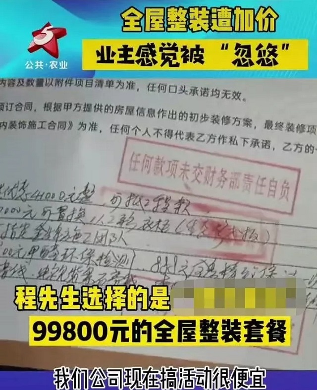 (江西電視臺報道“某裝修公司惡意加價,業(yè)主遭忽悠”)