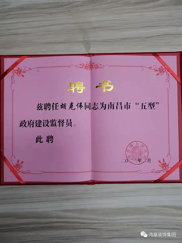 胡克偉表示:‘’此次能夠被選聘為“南昌市“五型”政府建設(shè)監(jiān)督員”!是榮譽(yù)、更是責(zé)任和鞭策!未來(lái),會(huì)當(dāng)好黨委政府密切聯(lián)系群眾的“連心橋”,凝聚民心、反映民意、了解民情,以“心中有譜,腳下有土”的工作作風(fēng),以“打頭陣、當(dāng)先鋒、做表率”的雄心壯志扛起省會(huì)責(zé)任,鑄牢忠誠(chéng)“第一底色”、夯實(shí)監(jiān)督“第一責(zé)任”,心往一處想、智往一處謀、勁往一處使,以扎實(shí)有效的監(jiān)督工作,形成共創(chuàng)美好未來(lái)的強(qiáng)大合力,為南昌高質(zhì)量跨越式發(fā)展貢獻(xiàn)力量!