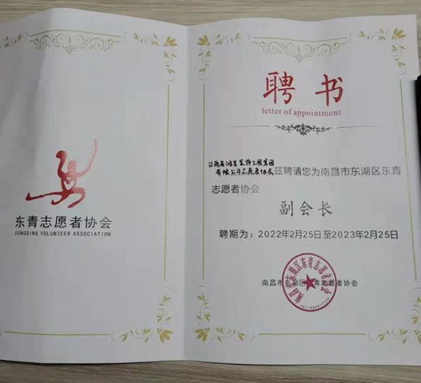 2022年2月25日,南昌市東湖區(qū)東青志愿者協(xié)會第四次會員代表大會召開。團(tuán)市委副書記熊堅(jiān)、團(tuán)市委志聯(lián)部部長李冰、團(tuán)區(qū)委書記晏佩琦、東湖區(qū)民政局一級主任科員周勁輝、團(tuán)區(qū)委副書記提名人員管鳳娟出席大會,江西省鴻基裝飾集團(tuán)工程有限公司集團(tuán)志愿者協(xié)會,作為新當(dāng)選的副會長單位參加此次會議。