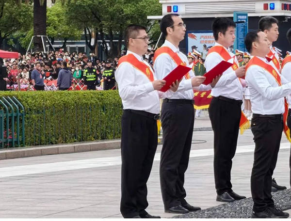 弘揚(yáng)勞動(dòng)精神,鴻基裝飾集團(tuán)董事長(zhǎng)胡克偉參加五一升國(guó)旗活動(dòng)