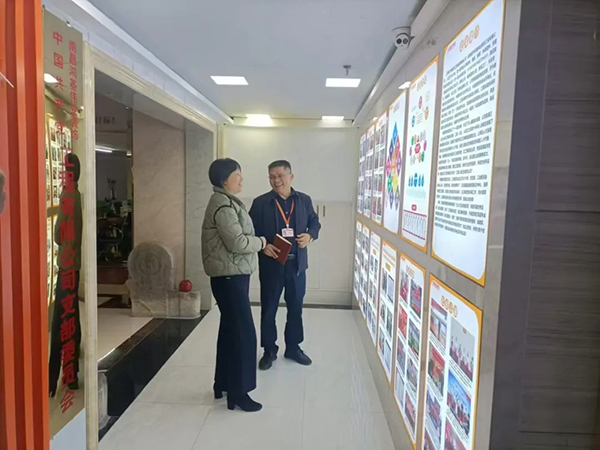 胡克偉首先帶領大家參觀了集團企業(yè)文化墻,詳細介紹了集團的經(jīng)營現(xiàn)狀和企業(yè)黨建、企業(yè)發(fā)展、企業(yè)社會公益等方面情況,并針對區(qū)新聯(lián)會工作成果、未來規(guī)劃等進行了匯報交流。邵應蘭認真傾聽相關匯報,詳細詢問了胡總個人工作和生活情況,認真聽取了胡總對裝飾工程行業(yè)發(fā)展及優(yōu)化營商環(huán)境的意見建議,同時也對其承擔社會責任、促進經(jīng)濟發(fā)展等給予了充分肯定。