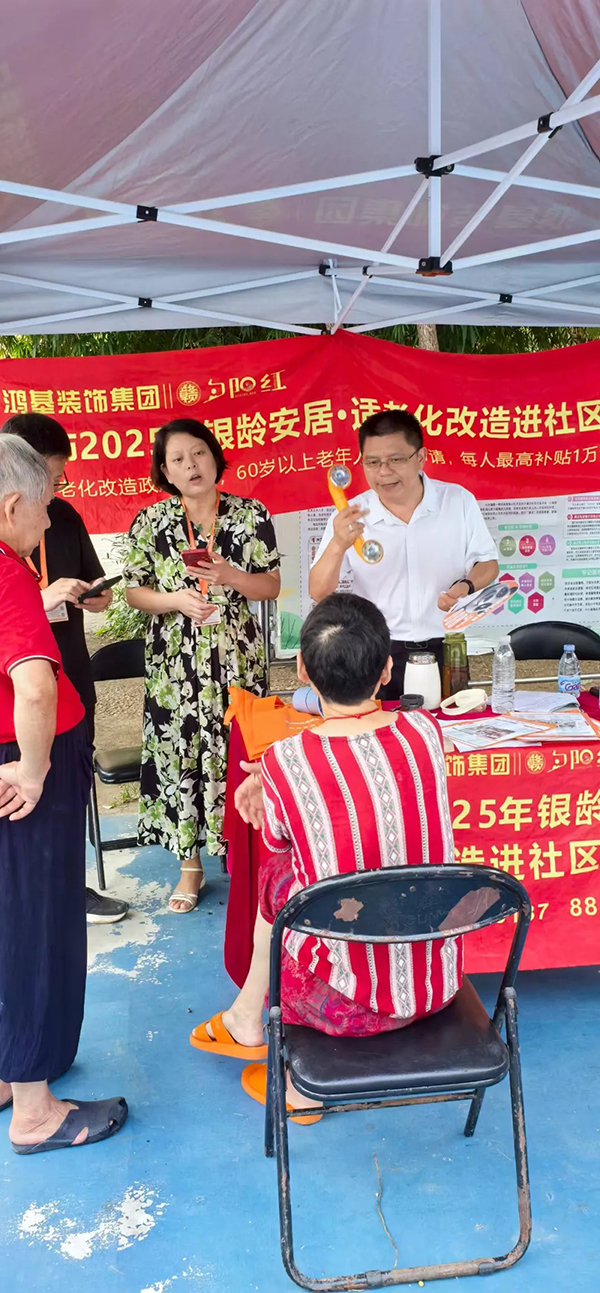 此次活動(dòng)通過面對(duì)面、零距離的溝通方式,讓更多老年人了解適老化改造的重要性與政策福利,更切實(shí)解決了老年群體及其家庭的實(shí)際困惑,將關(guān)愛落到實(shí)處。活動(dòng)現(xiàn)場(chǎng),鴻基裝飾集團(tuán)董事長(zhǎng)胡克偉表示:“后續(xù)集團(tuán)還將持續(xù)關(guān)注社區(qū)老年群體需求,憑借專業(yè)的設(shè)計(jì)與施工能力,為符合條件的家庭提供更優(yōu)質(zhì)的適老化改造服務(wù),讓“養(yǎng)老”變“享老”,為老年居民打造安全、便捷的居家環(huán)境”。