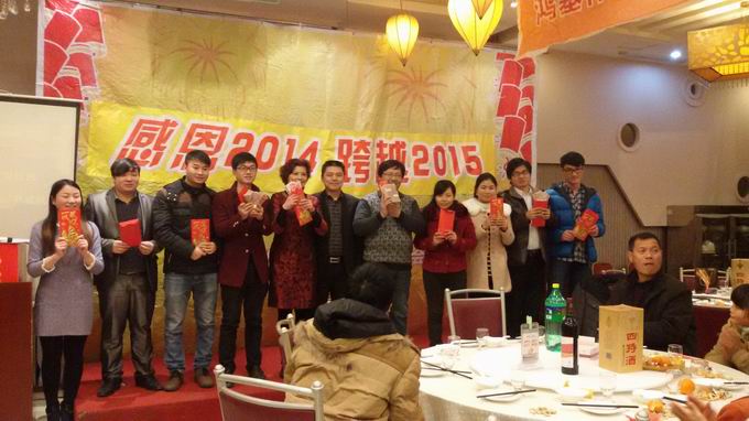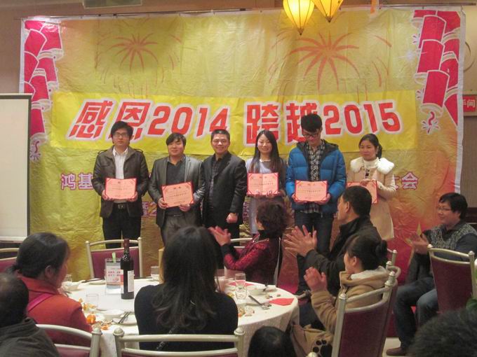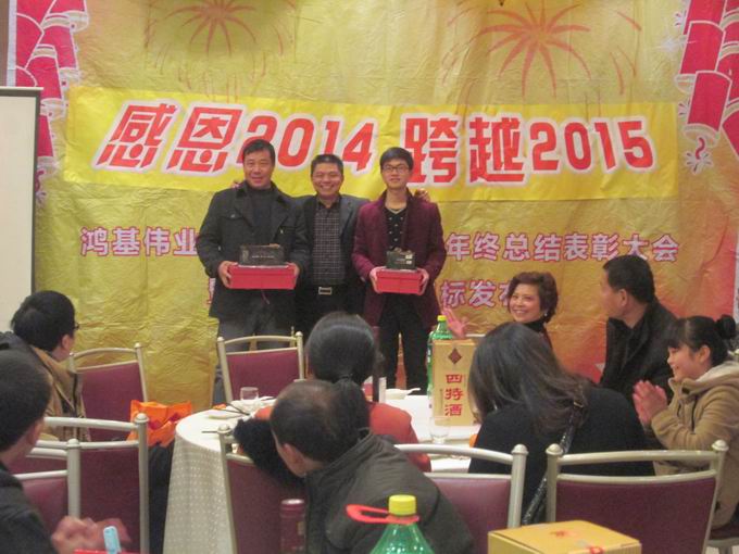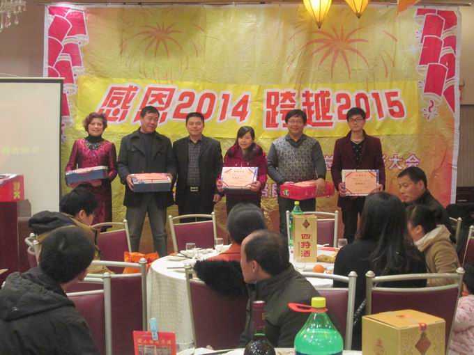 胡總為“2014年度優(yōu)秀員工”頒發(fā)獎品,并合影留念