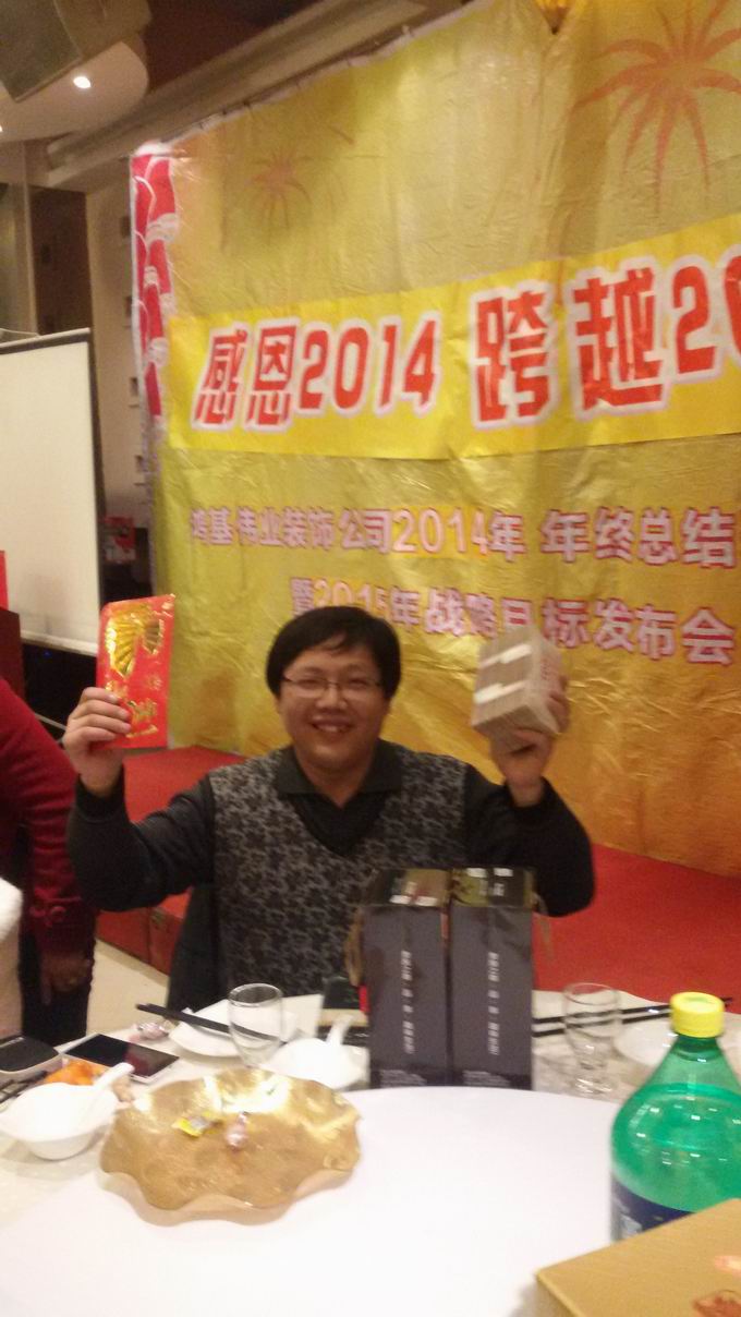 胡總為2014年度業(yè)績第一名設計師:宋建敏;年度第一名工程經(jīng)理:魏建保 頒獎
