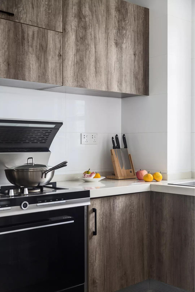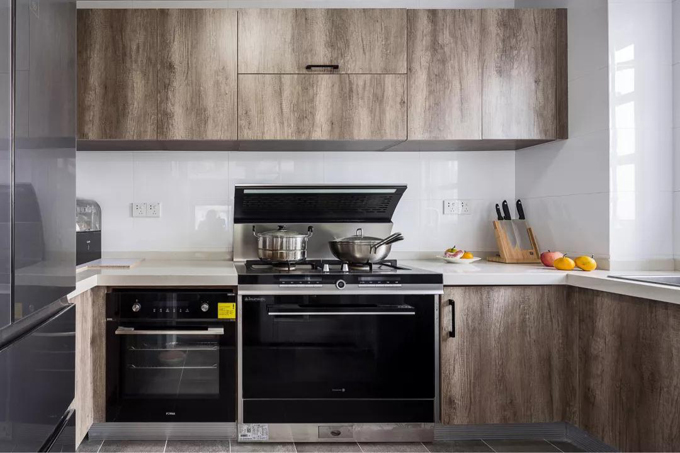 ▲灰木色的櫥柜,搭配白色墻面磚,顯得很是獨特自然的氣息。