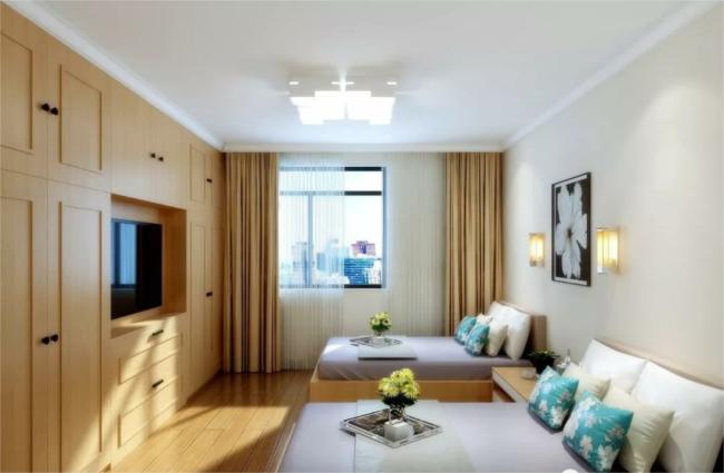▲老人房由于年齡較大,睡覺(jué)輕,兩人睡覺(jué)喜歡分床,這是獨(dú)居老人房設(shè)計(jì)的最大特點(diǎn)。色調(diào)以米黃色為主,燈光柔和安靜,老年人重收納,所以做整面墻體的收納柜,老人床頭燈的設(shè)計(jì),讓老人起夜更方便,貼心設(shè)計(jì)。 ▲次臥為不經(jīng)?;丶业膬号疁?zhǔn)備,以清新淺色為主,陽(yáng)臺(tái)做打通處理,小吧臺(tái)增加休閑工作區(qū)。 ▲兒童房以可愛(ài)的粉色為主色調(diào),滿足小姑娘的公主夢(mèng),之前的儲(chǔ)物空間與兒童房進(jìn)行打通,為兒童增加學(xué)習(xí)區(qū)域。體現(xiàn)出老人對(duì)孩子的關(guān)愛(ài)。 ▲U型櫥柜設(shè)計(jì),符合人體工程學(xué),煎、炒、烹、炸完美的廚房動(dòng)線規(guī)劃,幾平方里的淋漓盡致,廚房將不再是“戰(zhàn)場(chǎng)”,而是享受生活的“藝術(shù)空間”。