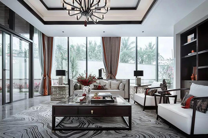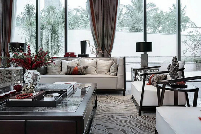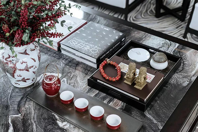 富貴之人必講究,講精致、講品位、講格調(diào)、講情懷。雄渾邈遠(yuǎn)的空間,精巧詩意的細(xì)節(jié),滿室風(fēng)雅。山水是人格修養(yǎng)或寓心明道的象征,時(shí)空在延續(xù)建筑形制的基礎(chǔ)之上,引山源水于室表達(dá)對生命、對傳統(tǒng)更深的冥想。