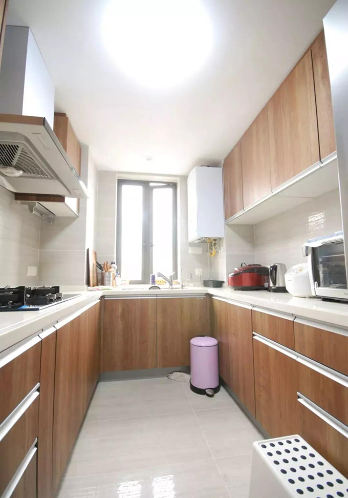這戶(hù)業(yè)主家廚房的面積不是很大,所以設(shè)計(jì)師在裝廚房的時(shí)候最注重的還是實(shí)用功能。U型廚房的基本功能非常好用,操作動(dòng)線(xiàn)也很合理,并且可以容納多人操作。