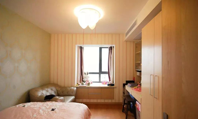 女兒房間的衣柜也是原來(lái)的家具,大家沒(méi)有看出來(lái)吧。為了搭配淺色的柜體顏色,地板選擇的也是偏淺的木地板。氣球造型的燈充滿(mǎn)浪漫氣息,非常夢(mèng)幻。