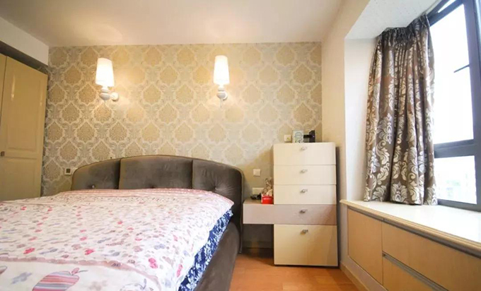?做飄窗也是打造收納空間的一個(gè)好方式,飄窗下面的柜子里可以收納,閑時(shí)也可以坐在上面聽(tīng)聽(tīng)音樂(lè)、看看書(shū)。插座的位置是原本就定好的位置,家具、臺(tái)燈都是根據(jù)插座的位置擺放安置的。