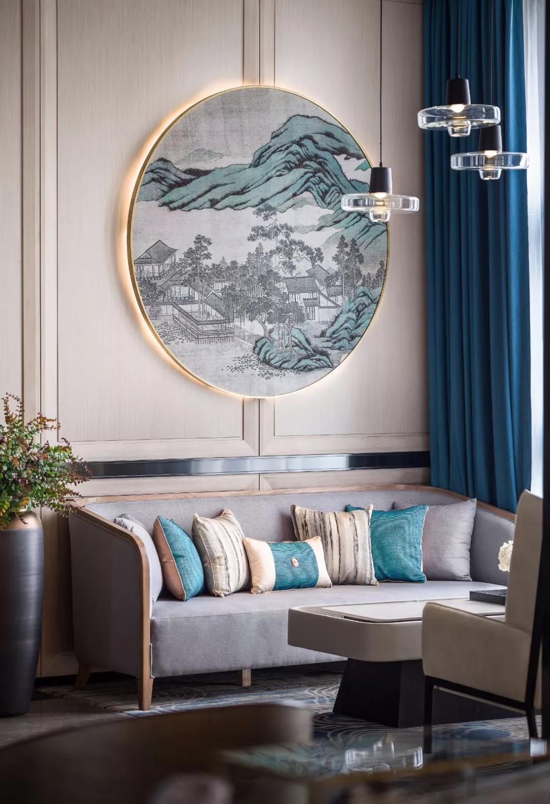 新中式沙發(fā)墻可以是一幅水墨畫,