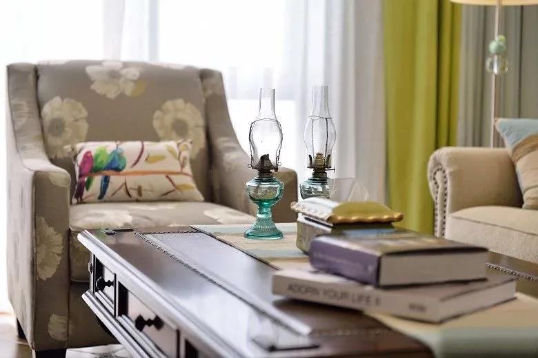 茶幾上精致的洋油燈、抽紙盒等小飾品,為客廳帶來了不少的美式風(fēng)情。