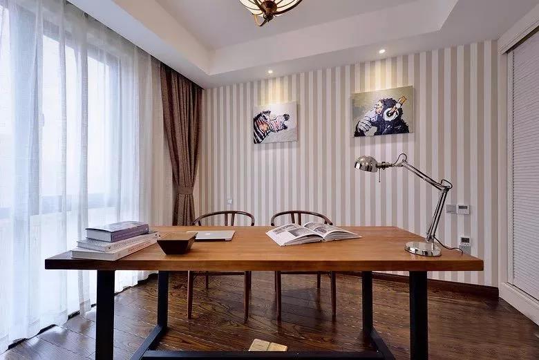 今天分享的是一套150平米的房子,整體裝修以現(xiàn)代美式風(fēng)格為主,在優(yōu)雅精致的仿古質(zhì)感下,搭配上淡雅的色調(diào),精致的軟裝,裝出一個(gè)獨(dú)特的華麗端莊之家。 進(jìn)入玄關(guān)區(qū)域,迎面而來的是棕色仿古磚作為邊線,中間貼上仿古質(zhì)感的馬賽克地磚,在拐角墻面擺上一個(gè)鐵藝端景臺(tái),擺飾上小飾品,墻面掛上一副油畫,讓你一進(jìn)門就感受到不一樣的精致文藝氣息。側(cè)邊油灰色的鞋柜收納柜,搭配灰色的墻面,為這個(gè)空間帶來了幾分安靜的氣息。 客廳 客廳兩面臨窗,具有更加明亮的空間感,沙發(fā)靠窗擺放,這面窗以百葉簾作為窗簾,淡藍(lán)色的墻面搭配井格造型的天花,搭配上美式格調(diào)的家居軟裝,顯得格外的優(yōu)雅高檔。 精致的臺(tái)燈。 餐廳 餐廳面積相對(duì)寬松,擺上一套圓形的餐桌椅,結(jié)合圓形的吊燈造型,顯得和諧端莊而大氣。旁邊的墻面上架著2個(gè)小收納架,擺著精致優(yōu)雅的飾品,讓餐廳顯得更加端莊雅致。 廚房 廚房的櫥柜以青綠色的櫥柜,有著大面積的窗戶,讓廚房顯得格外的舒適明亮,在這個(gè)寬敞的廚房里做飯,相信心情都能舒暢不少。 走廊 走廊與客廳隔著一個(gè)拱形門,采用與玄關(guān)一致的仿古馬賽克地磚,淡藍(lán)色的墻面上掛上一組的照片墻,讓空間更加的優(yōu)雅精致大氣。 臥室 床頭背景墻以藍(lán)綠色的邊框搭配上花紋壁紙,木地板基礎(chǔ)擺上一張白色的床與床頭柜,搭配深藍(lán)色的窗簾,整個(gè)空間充滿了儒雅高檔的空間感。 床尾上擺一只白色抽屜斗柜,臺(tái)面上一幅花鳥裝飾畫,還有一瓶小插畫。 衣帽間 衣帽間以開放式的衣柜,木質(zhì)感的衣柜中間還嵌入了一張小梳妝臺(tái),女主人可以在這里化妝穿著打扮一番。 次臥 次臥床頭在壁紙的基礎(chǔ),四周做了簡單的吊頂,深色木地板搭配上一張棕色皮藝靠背的床墊,一張舒適的床單,提供了個(gè)安靜閑適的休憩空間。 書房 書房以豎紋壁紙張貼墻面,一張大大的雙人書桌,為主人提供了個(gè)寬松的在家看書工作的空間。 衛(wèi)生間 衛(wèi)生間墻腳以仿古藍(lán)墻面,中間貼著花紋腰線,墻身則是白+褐的仿古磚,白色洗手盆搭配一只太陽造型的鏡子,顯得格外的端莊雅致。