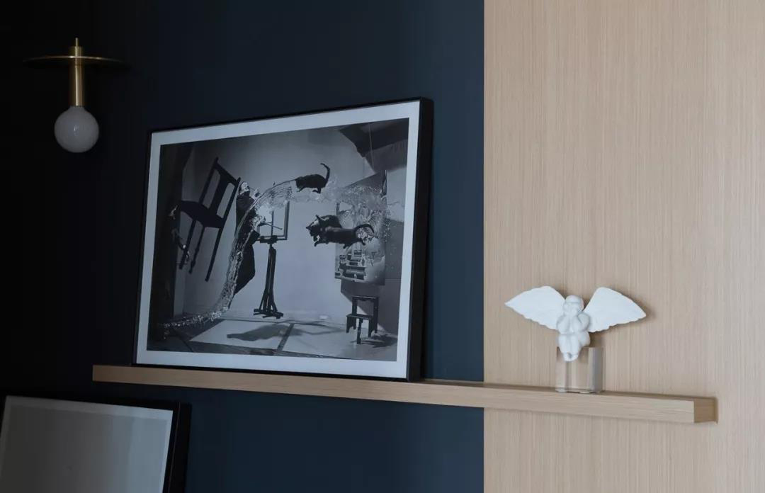 客廳深藍色的背景墻,比黑色更洋氣百搭,比灰色更深沉成熟,神秘冷峻的深藍色更能突現(xiàn)品質(zhì)感。