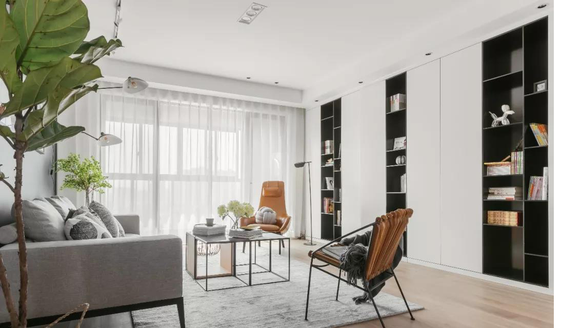 客廳不設置電視墻以書柜取代,可以增加家庭氛圍,也可培養(yǎng)家庭的閱讀習慣增加家人間的交流。