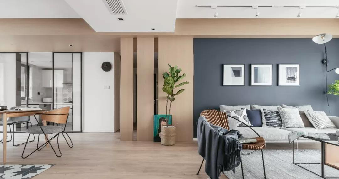 本案是一套面積為180平米的現(xiàn)代簡約風案例,深藍色搭配木色,高貴優(yōu)雅又不失自然舒適的氣質(zhì)。