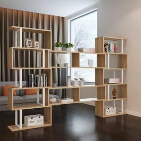 收納書架也是客廳比較常見的隔斷。它的好處是靈活方便,也比較透光,在日后的生活中也可以隨意調(diào)整。因為不涉及硬施工,尺寸也隨意,多放或少放比起砸墻切磚的施工都是省事兒。