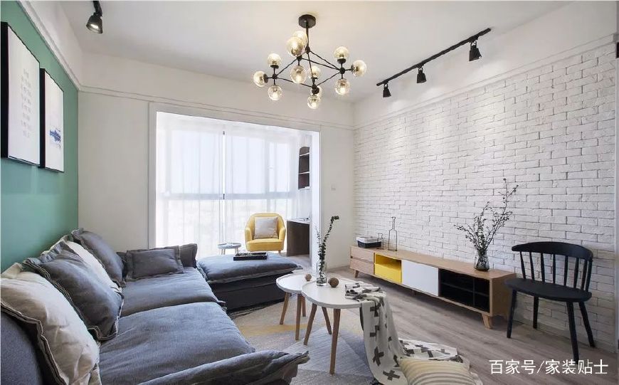 ▲ 乳白色帶點朦朧視感的落地窗,大面積的文化磚和分子魔豆燈的搭配,增加采光的同時還顯得格外通透。