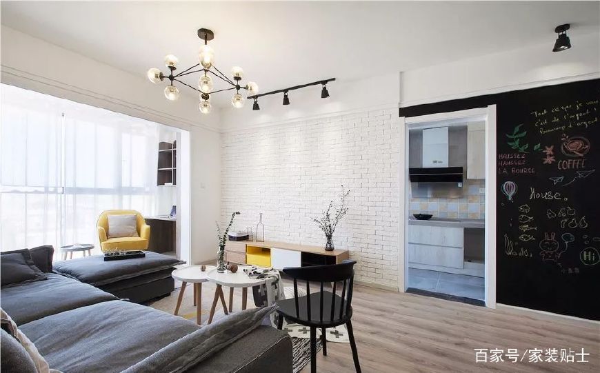 ▲ 電視墻的右邊進去是廚房,為了讓空間看起來更加美觀與實用,在廚房門的旁邊刷了黑板漆,使空間簡約而不簡單,還可記錄生活的點點滴滴。
