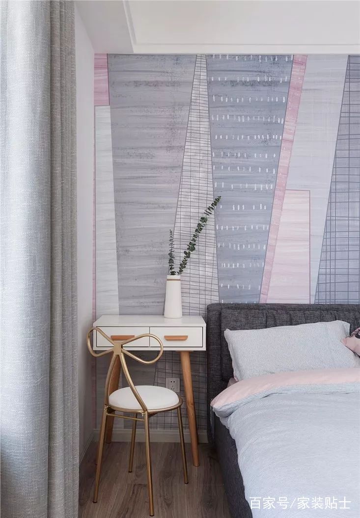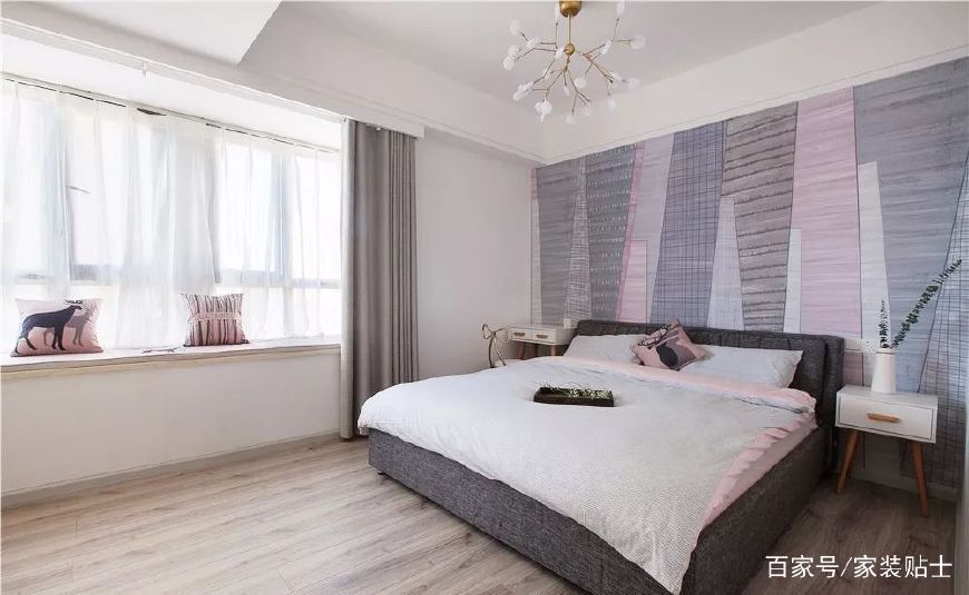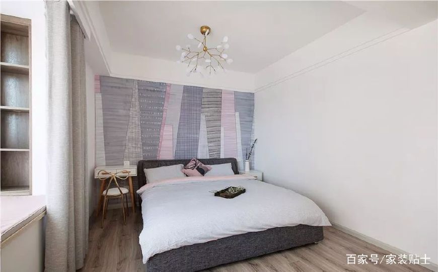 ▲ 主臥是由兩個房間打通設計而成的,增加了衣帽間的功能,以白、灰、粉為主色調,大氣自然,寬敞舒適