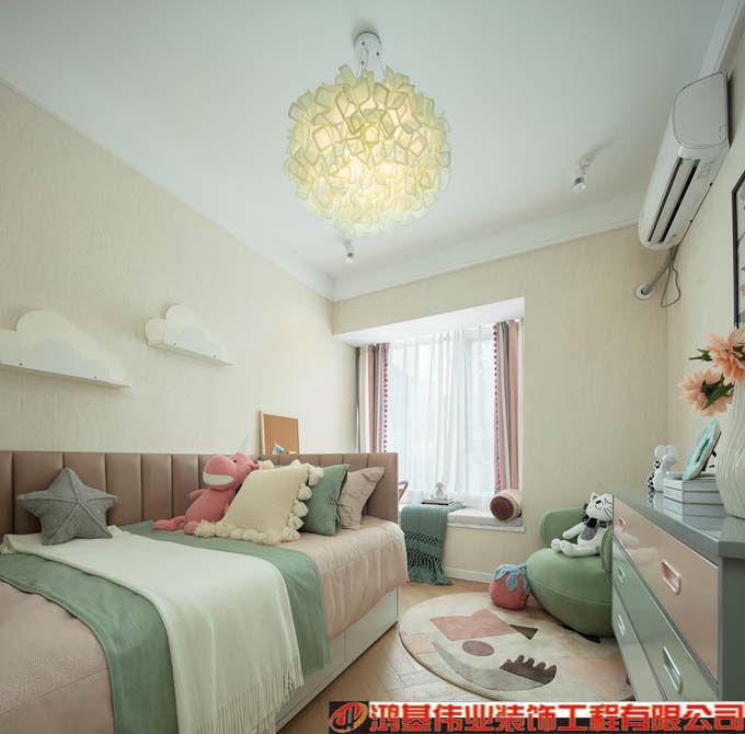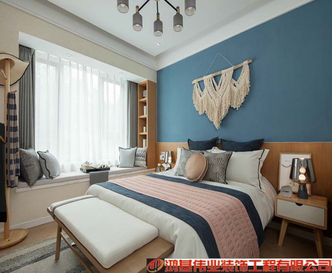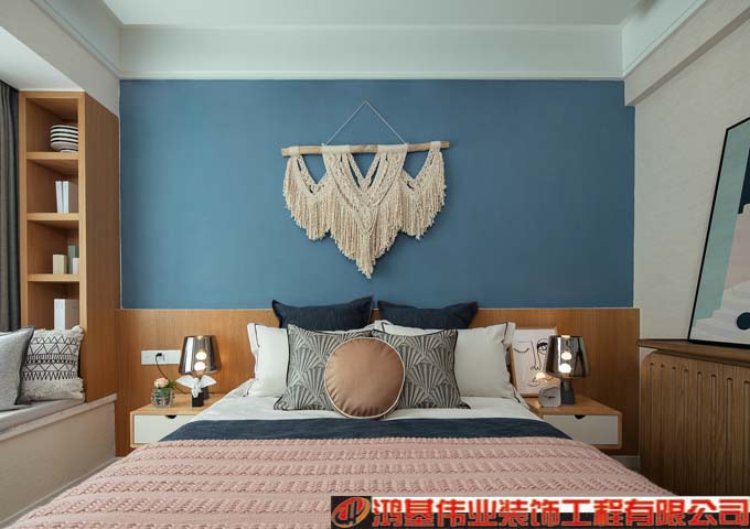 主臥的大飄窗讓人心動,陽光灑入、微風幾許一片歲月靜好,暖色床品、軟裝掛飾搭配,營造出寧靜淡雅的睡眠環(huán)境。整體色調偏暖,簡約溫暖舒適,床頭的小臺燈在夜晚照亮屬于自己的小天地。