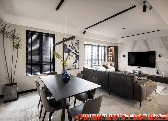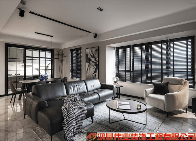 黑白灰為主色調的裝修方案,營造出明亮通透舒適愜意的大空間