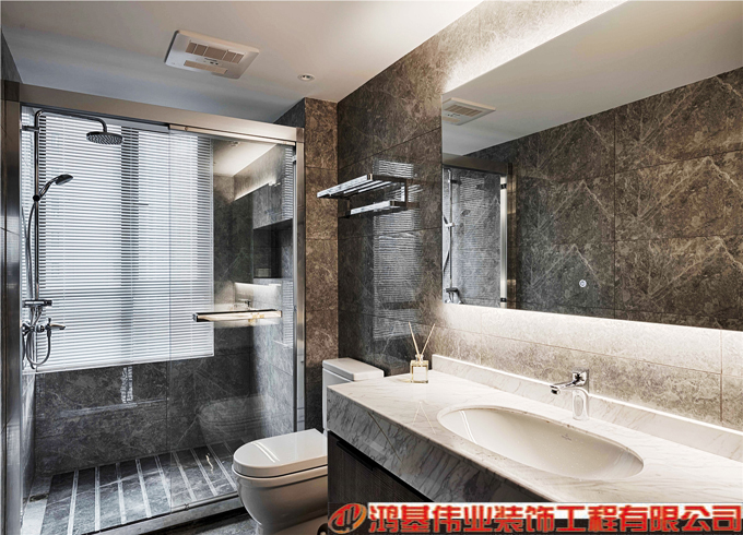 業(yè)主比較喜歡酒店風格,因經常出差住酒店,所以對衛(wèi)生間比較注重,三分離的設計,爵士白天然石材的大型臺面使用比較舒適。