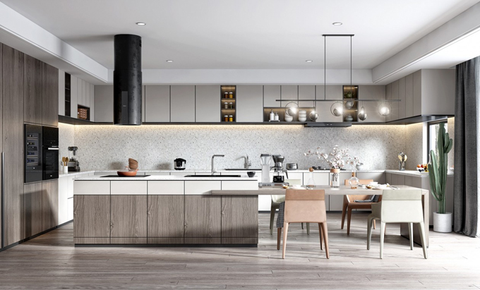 板材有吸塑板、烤漆板、雙飾板、防火板、實(shí)木門板、不銹鋼板等,它們各有優(yōu)勢(shì),適合用在不同風(fēng)格的櫥柜設(shè)計(jì)。